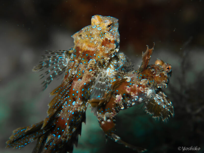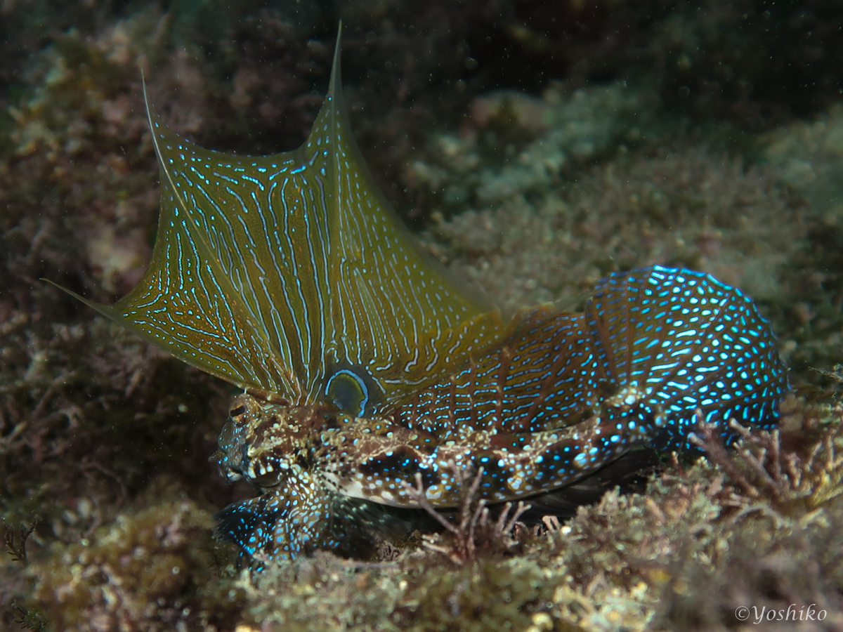 浅瀬だったので、100分のロングダイブでしたが、興奮の連続で「帰るよ」と言われたときは、「もうちょっといたい」と言いそうになったほど。ひたすらとヤマドリの雄を追いかけ回し、カメラを構え、背びれを広げるのをドキドキしながら、待つ。何回やっても全く飽きませんでした。