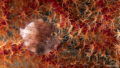 水深20mくらいのところ、貝の中にいました。最初はこのくらい遠くからシャッター切ってみました。全然遠いので、もっと寄りたい。ゆっくり近づいているつもりなのに、あっという間に逃げられ、貝の中に入ってしまいました。