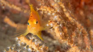 オキゴンベは黄色いゴンベの仲間。オキは「沖」の意味で、ゴンベの仲間でも比較的深いところにいるそうです。